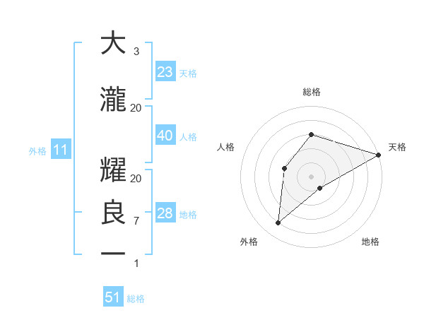 大瀧 耀良一さんを姓名の画数から五運を鑑定