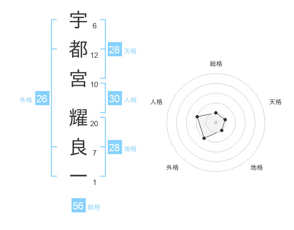 宇都宮 耀良一さんを姓名の画数から五運を鑑定