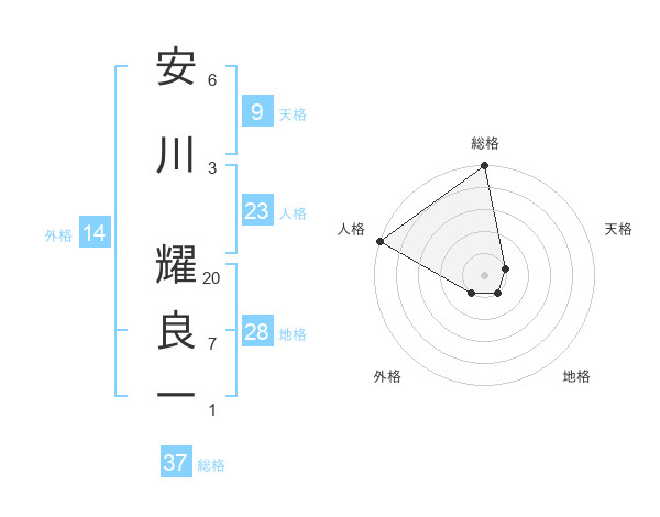 安川 耀良一さんを姓名の画数から五運を鑑定