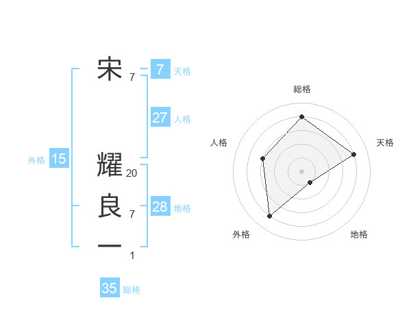宋 耀良一さんを姓名の画数から五運を鑑定