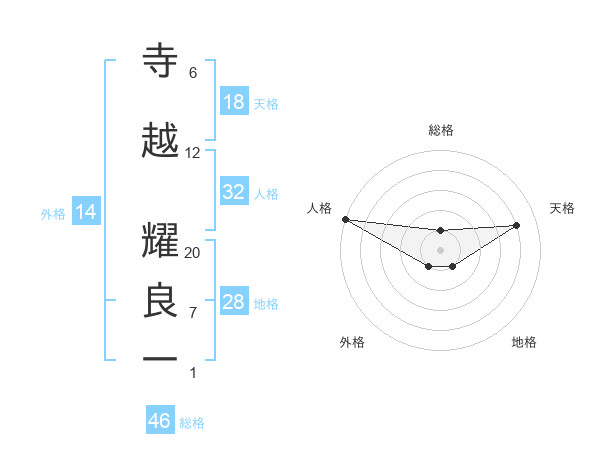 寺越 耀良一さんを姓名の画数から五運を鑑定