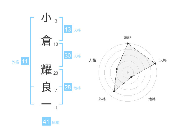 小倉 耀良一さんの天格は13画の5点!
