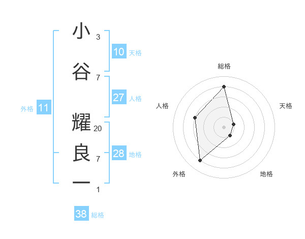 小谷 耀良一さんの総格は38画の4点!