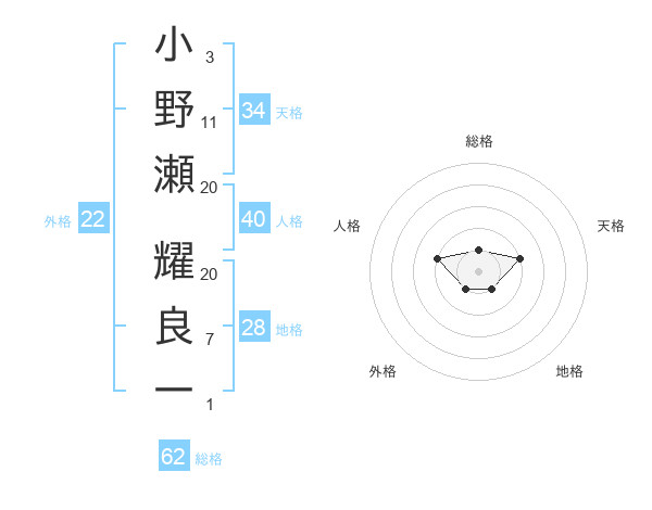小野瀬 耀良一さんを姓名の画数から五運を鑑定