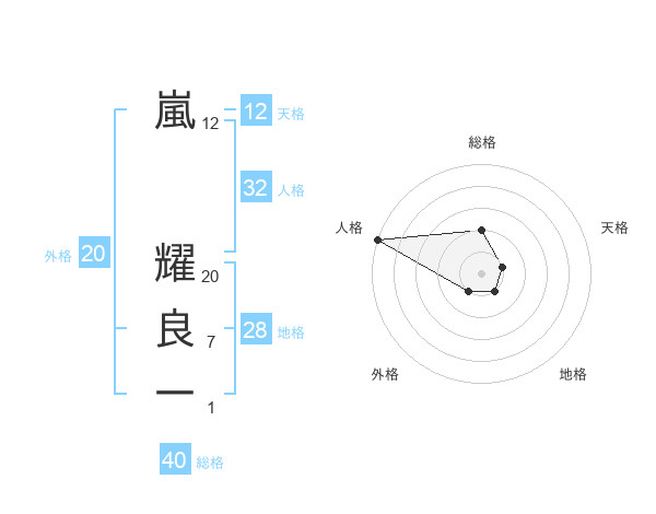 嵐 耀良一さんを姓名の画数から五運を鑑定