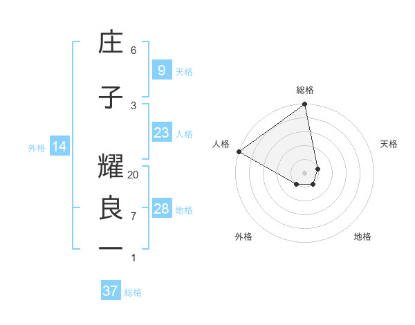 庄子 耀良一さんの総格は37画の5点!