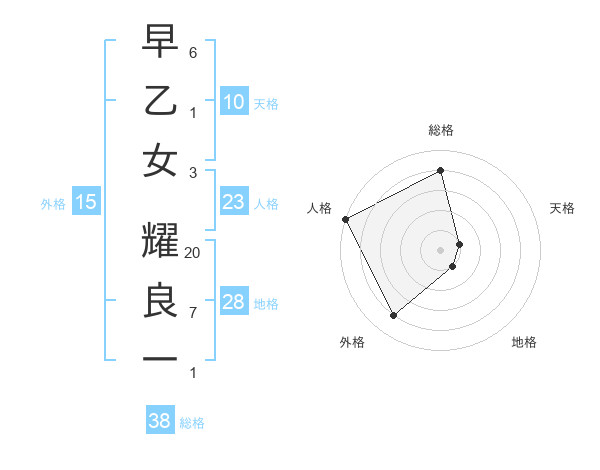 早乙女 耀良一さんを姓名の画数から五運を鑑定