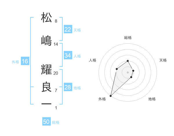 松嶋 耀良一さんを姓名の画数から五運を鑑定