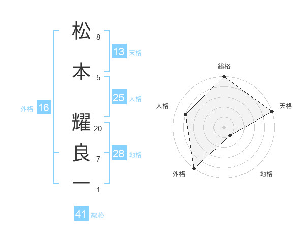 松本 耀良一さんを姓名の画数から五運を鑑定