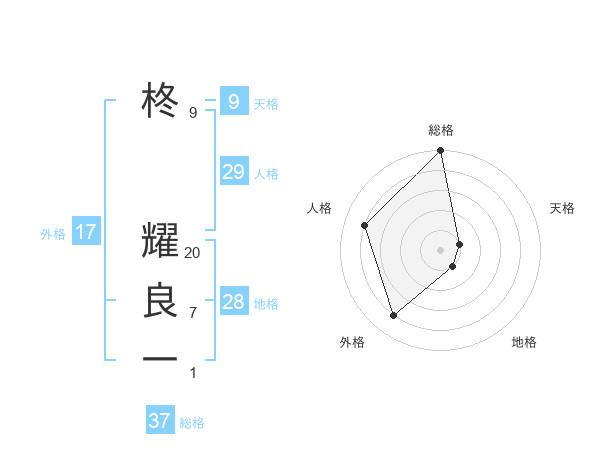 柊 耀良一さんの総格は37画の5点!