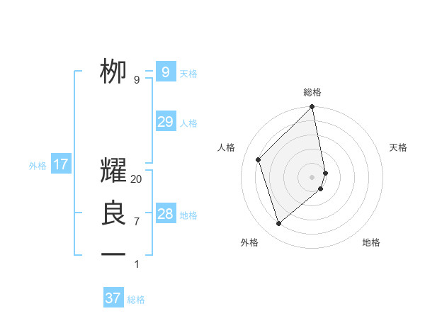 栁 耀良一さんを姓名の画数から五運を鑑定