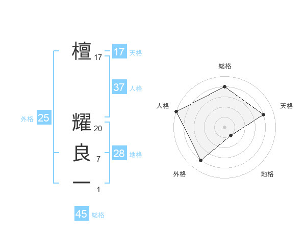 檀 耀良一さんを姓名の画数から五運を鑑定