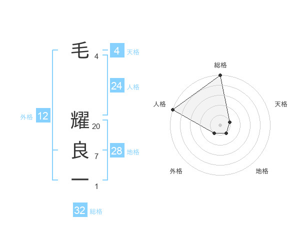 毛 耀良一さんの総格は32画の5点!