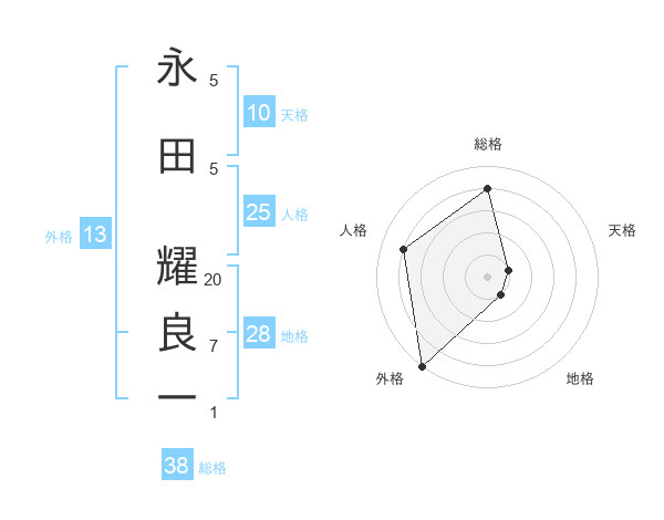 永田 耀良一さんの外格は13画の5点!