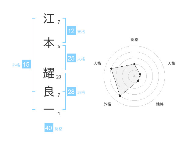 江本 耀良一さんを姓名の画数から五運を鑑定