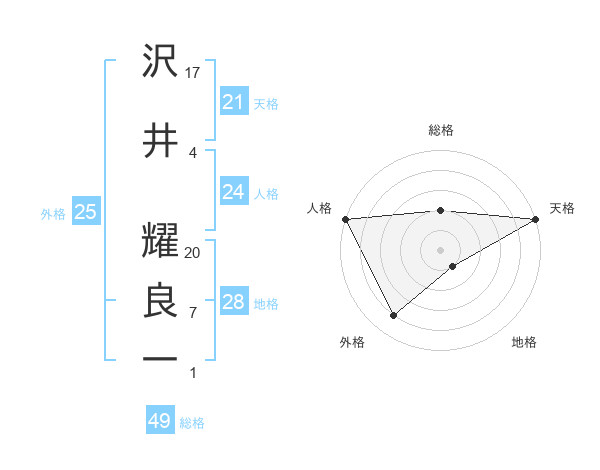 沢井 耀良一さんの総格は49画の2点