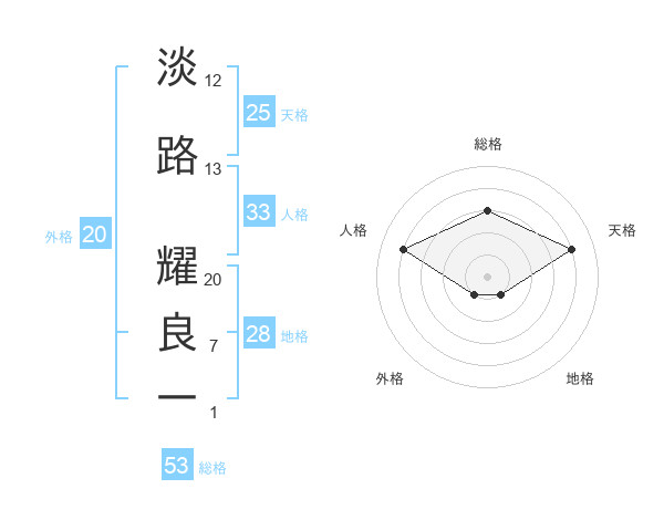 淡路 耀良一さんを姓名の画数から五運を鑑定