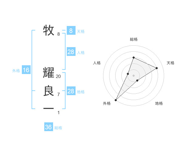 牧 耀良一さんを姓名の画数から五運を鑑定