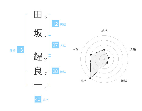 田坂 耀良一さんの外格は13画の5点!