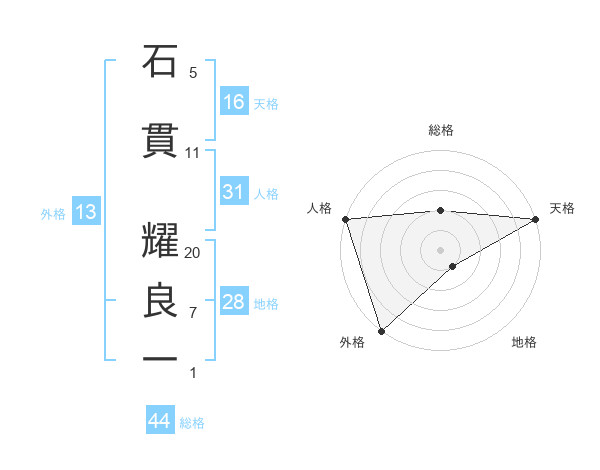 石貫 耀良一さんを姓名の画数から五運を鑑定