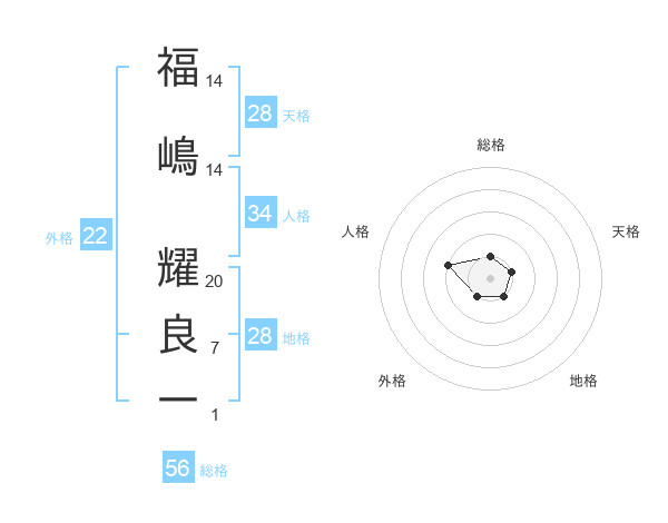 福嶋 耀良一さんを姓名の画数から五運を鑑定