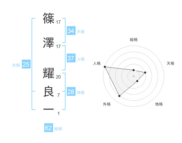 篠澤 耀良一さんを姓名の画数から五運を鑑定