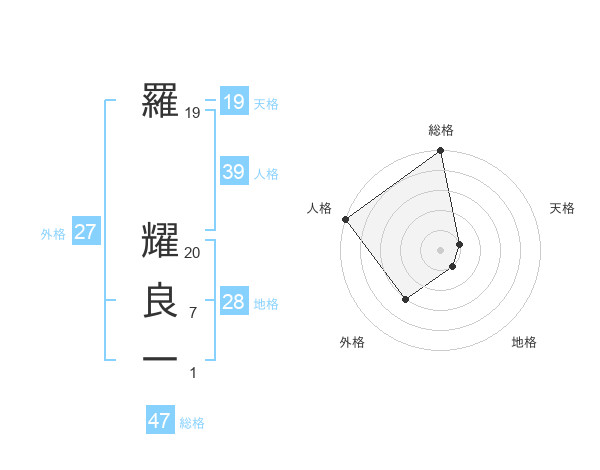 羅 耀良一さんの総格は47画の5点!