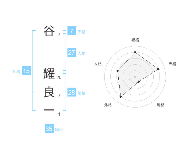 谷 耀良一さんの総格は35画の4点!