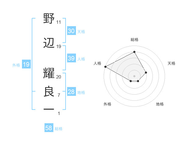 野辺 耀良一さんの総格は58画の4点!