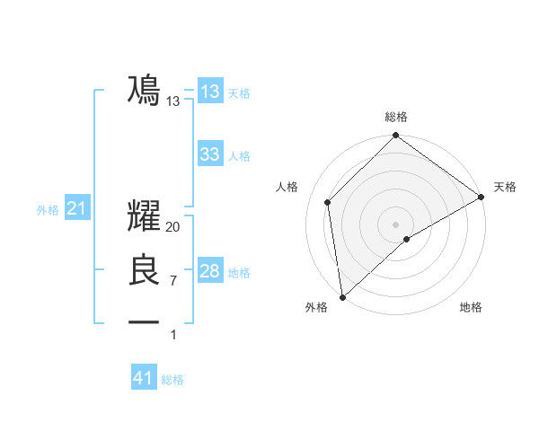鳰 耀良一さんの天格は13画の5点!