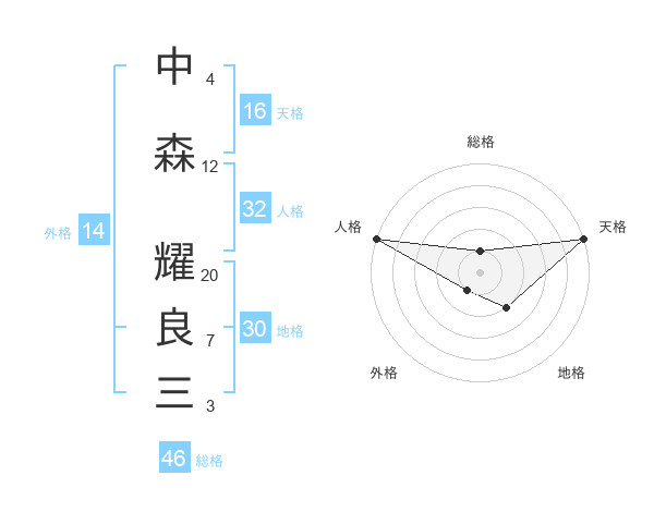 中森 耀良三さんを姓名の画数から五運を鑑定