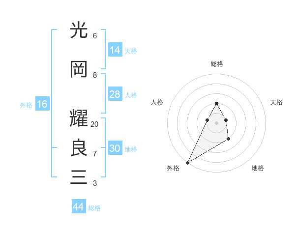 光岡 耀良三さんの総格は44画の2点!