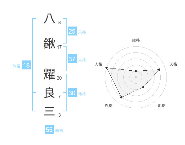 八鍬 耀良三さんの総格は55画の1点!