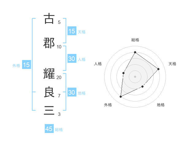 古郡 耀良三さんの総格は45画の4点!