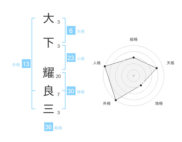 大下 耀良三さんを姓名の画数から五運を鑑定