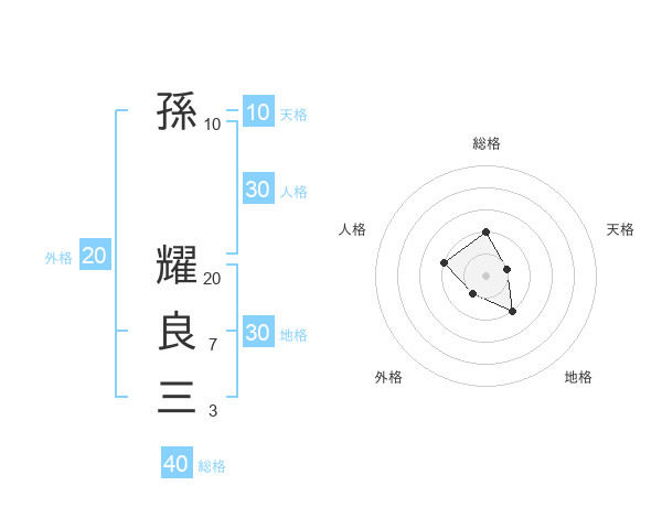 孫 耀良三さんの外格は20画の1点!
