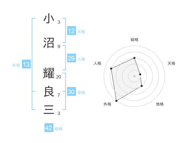 小沼 耀良三さんを姓名の画数から五運を鑑定