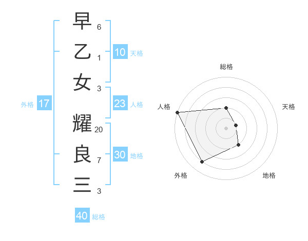 早乙女 耀良三さんの外格は17画の4点