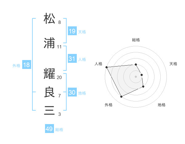 松浦 耀良三さんの総格は49画の2点