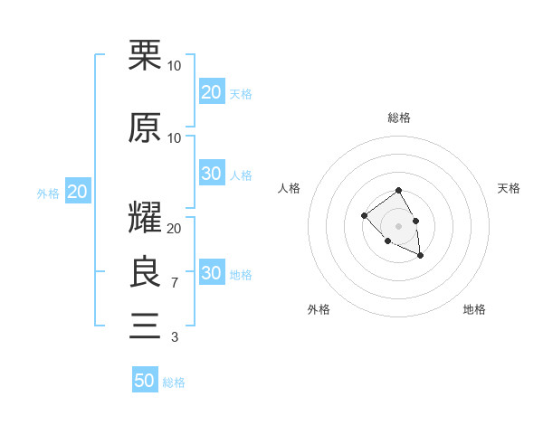栗原 耀良三さんの総格は50画の2点!