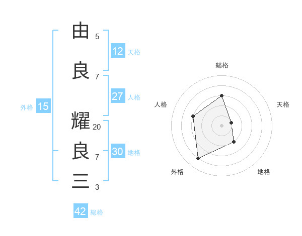 由良 耀良三さんを姓名の画数から五運を鑑定