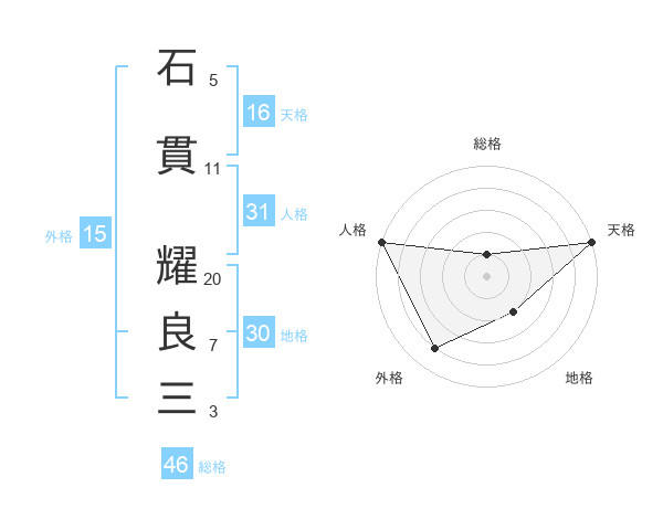 石貫 耀良三さんの総格は46画の1点!