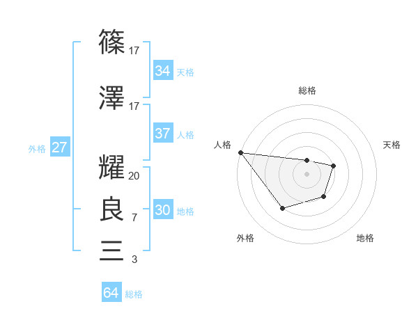 篠澤 耀良三さんを姓名の画数から五運を鑑定
