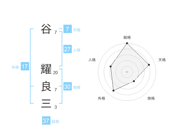 谷 耀良三さんの総格は37画の5点!