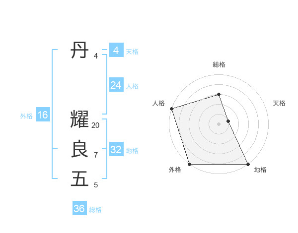 丹 耀良五さんを姓名の画数から五運を鑑定