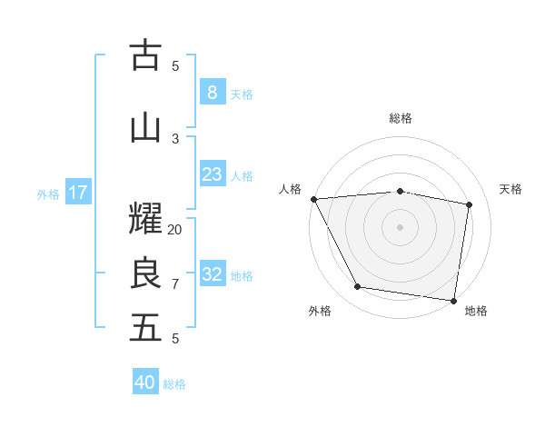 古山 耀良五さんを姓名の画数から五運を鑑定