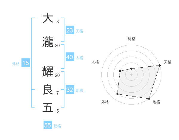 大瀧 耀良五さんを姓名の画数から五運を鑑定