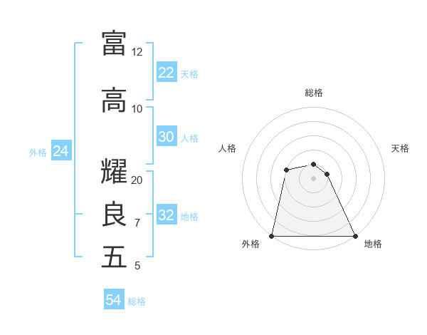 富高 耀良五さんの総格は54画の1点!