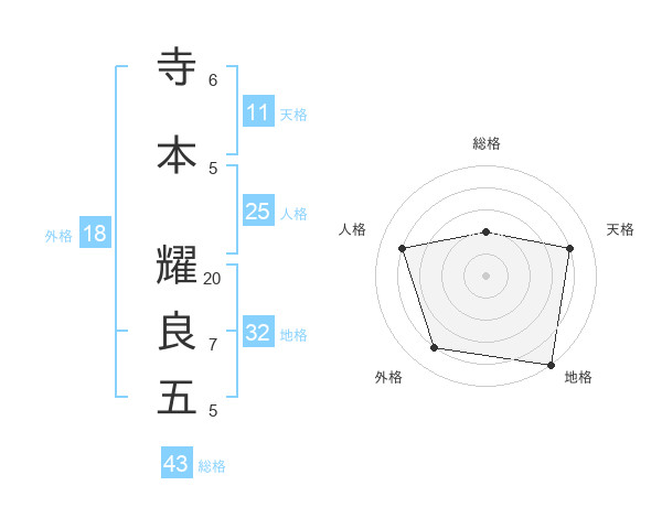 寺本 耀良五さんの総格は43画の2点!