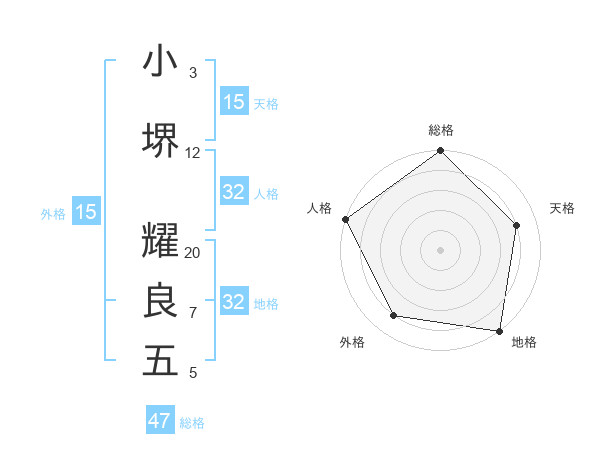 小堺 耀良五さんの総格は47画の5点!